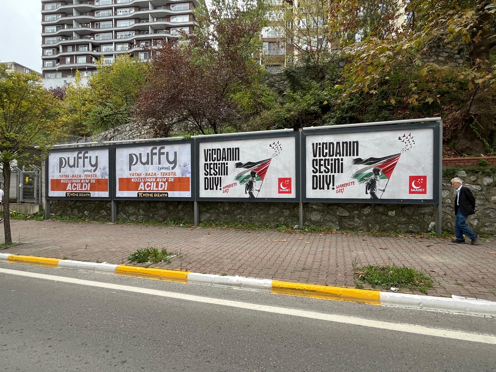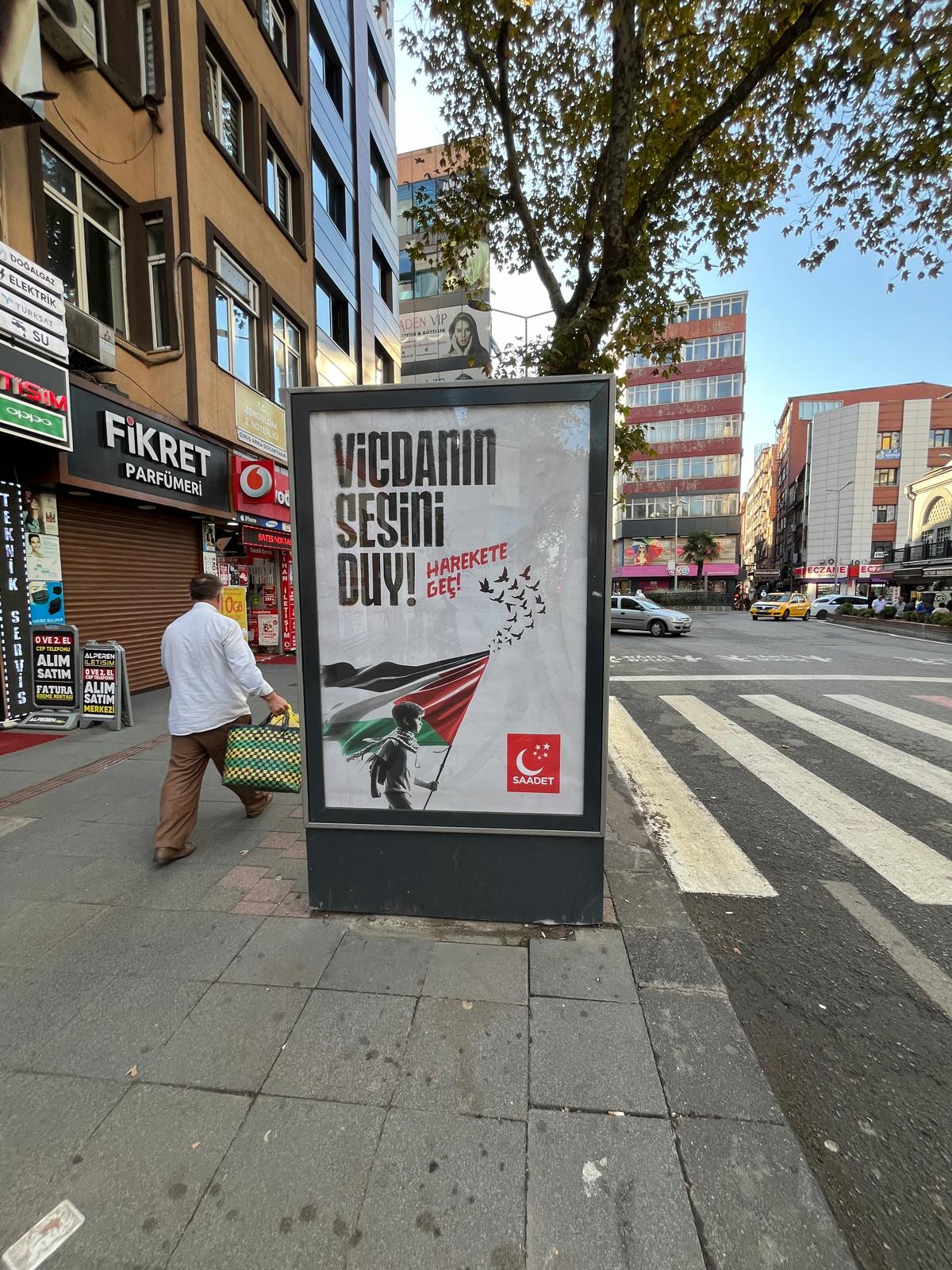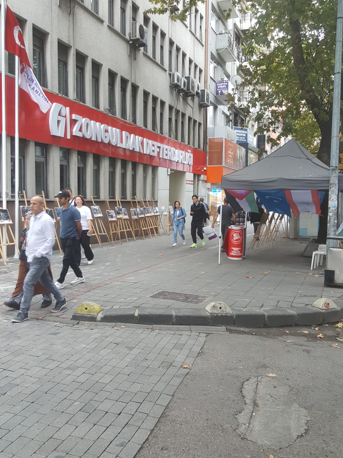 Saadet Partisi Zonguldak Merkez İlçe Başkanlığı, Madenci Anıtı önünde 4 Ekim Cuma günü düzenlendikleri basın açıklaması ile başlayan etkinliklerin bilboard ilanları ve afişlerin asılmasının ardından Gazipaşa Caddesi'ndeki Karaelmas Vergi Dairesi Müdürlüğü önündeki stantta 25 adet Gazze soykırımını anlatan fotoğrafın sergilenmesinin yanı sıra Filistin, Doğu Türkistan, Lübnan, Yemen bayraklarının asılması ve broşür dağıtımı ile devam ettiğini bildirdi.Saadet Partisi Merkez İlçe Başkanı İsmail Üstünyer, konuya dair yaptığı açıklamada şu ifadelere yer verdi:"Bilindiği gibi katil terör çetesi İsrail'in Gazze ve Lübnan'da kadın, çocuk gibi sivil hedeflere yönelik katliamlarında 42 bini aşkın insan hayatını kaybetmiş durumda. Olayın asıl trajedik kısmı ise Türkiye üzerinden katil terör çetesine petrol sevkiyatının, milyarlarca dolarlık ticaretin devam etmesinin yanısıra Kürecik ve İncirlik üslerinden sağlanan desteğin devam etmesi, diplomatik ilişkilerin devamı da iktidarın bu konudaki vurdumduymazlığının gözler önünde devam etmesi. Bu anlamda iktidara çağrı yapıyoruz;
