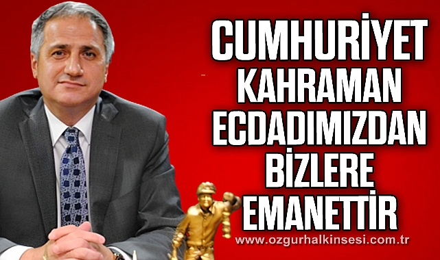 Cumhuriyet, Gazi Mustafa Kemal Atatürk önderliğinde, istiklâli ve istikbali uğruna ölüme meydan okuyan, milli ve manevi değerlerini çiğnetmeyen, her türlü zorluk ve yokluğa rağmen Kurtuluş Savaşımızı eşsiz bir zaferle taçlandıran kahraman ecdadımızdan bizlere emanettir. Bu emanet, devletimiz için sadece bir yönetim şekli değil, geleceğimize güvenle bakmamızı sağlayan, Türk milletinin binlerce yıllık tarihi boyunca gerçekleştirdiği en büyük atılımdır.