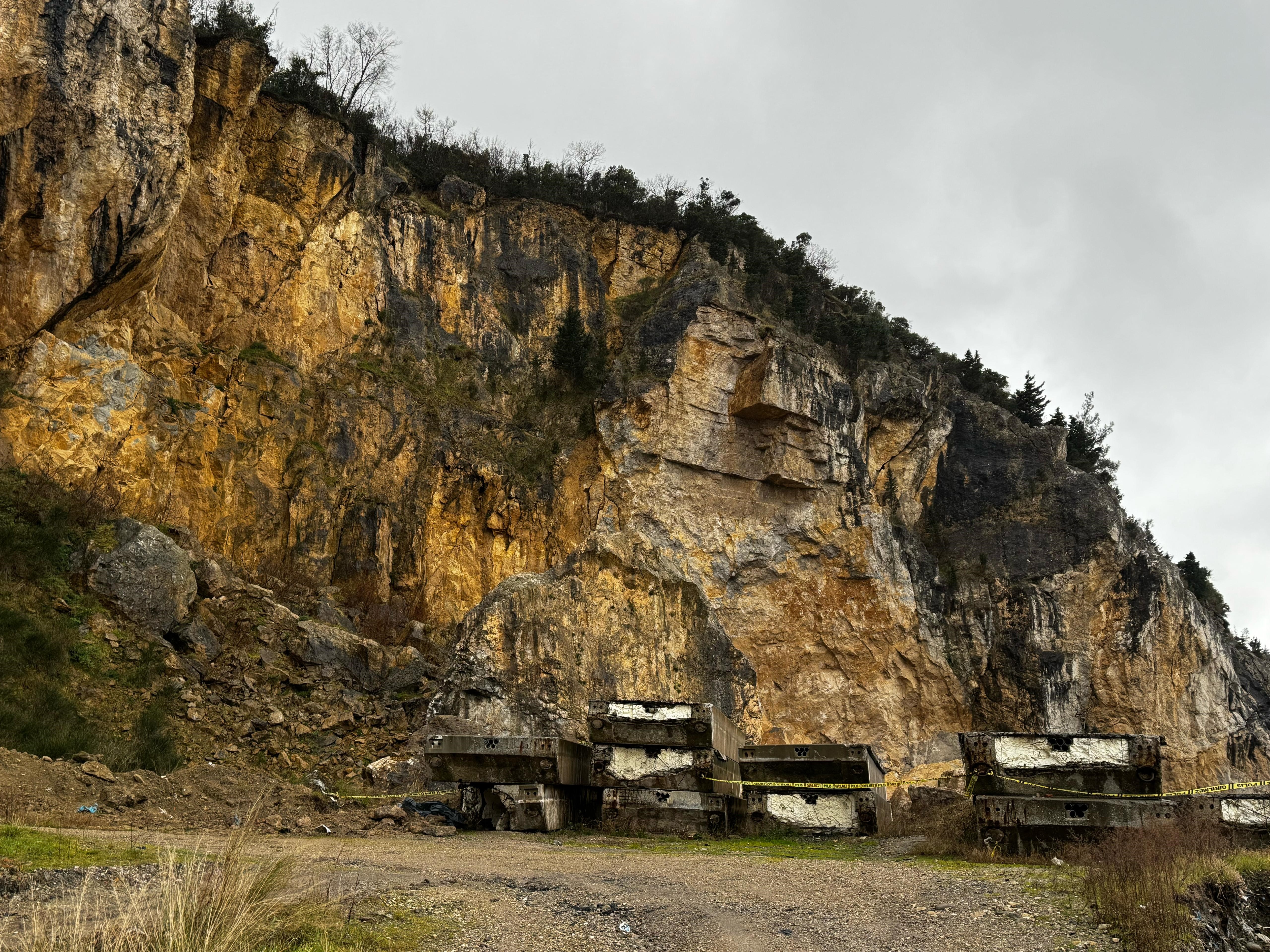Sahilde kayaların düştüğü bölgeye dalgalara karşı uyarı amacıyla olay öncesinde güvenlik şeridi çekildiği öğrenildi.