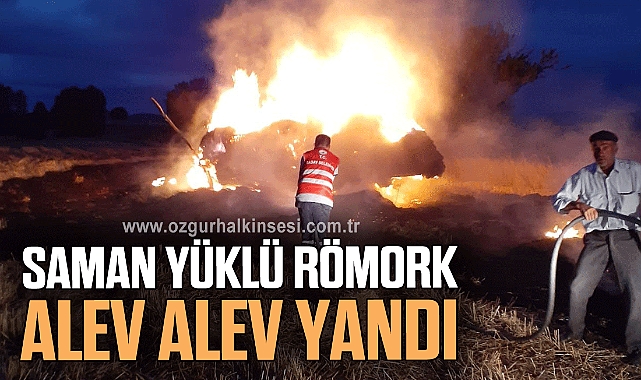 Yangında 150 saman balyası küle dönerken, römork kullanılmaz hale geldi.