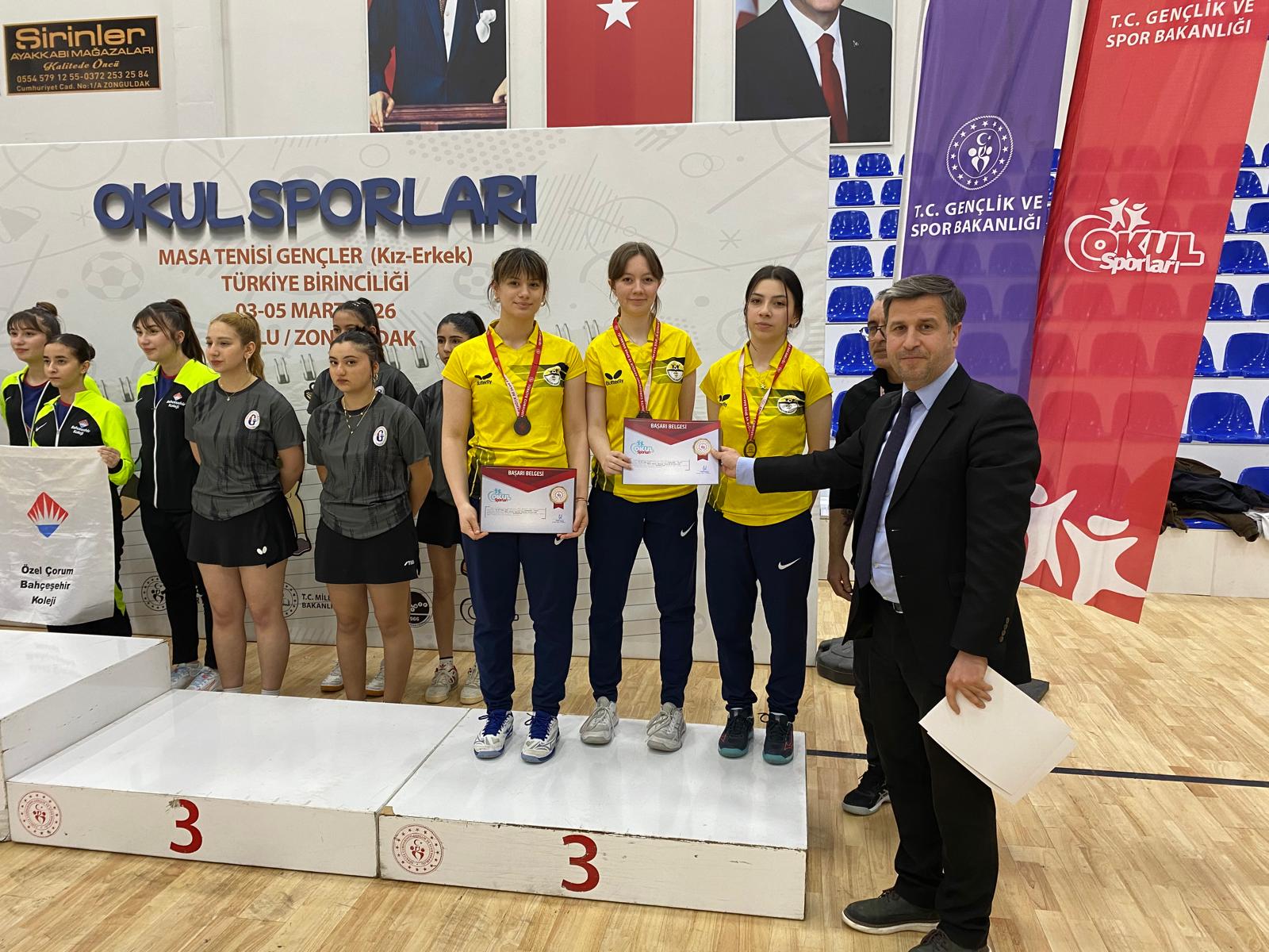Okullar arası Masa Tenisi Genç Kızlarda Dereceye giren okullar şöyle;