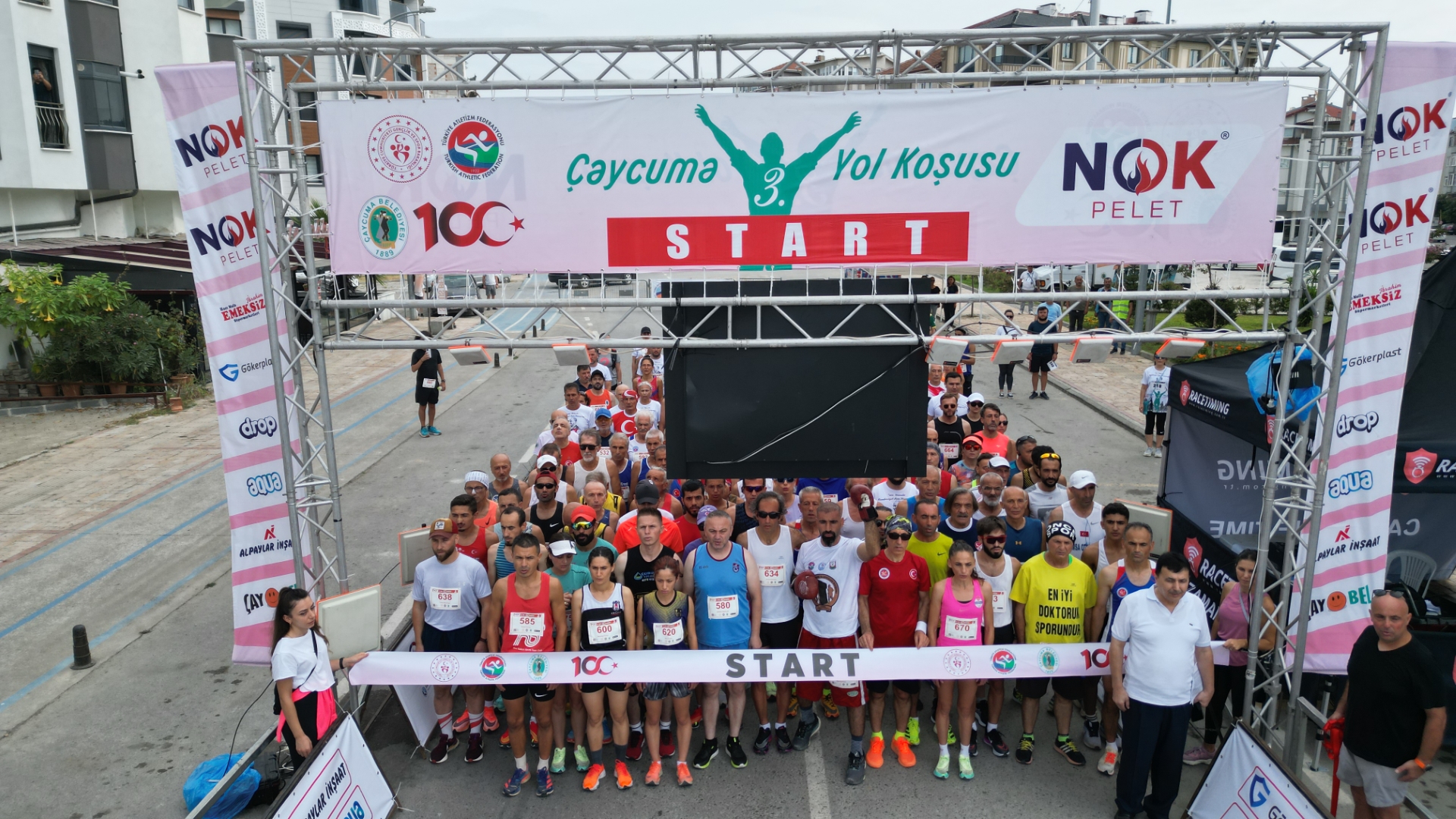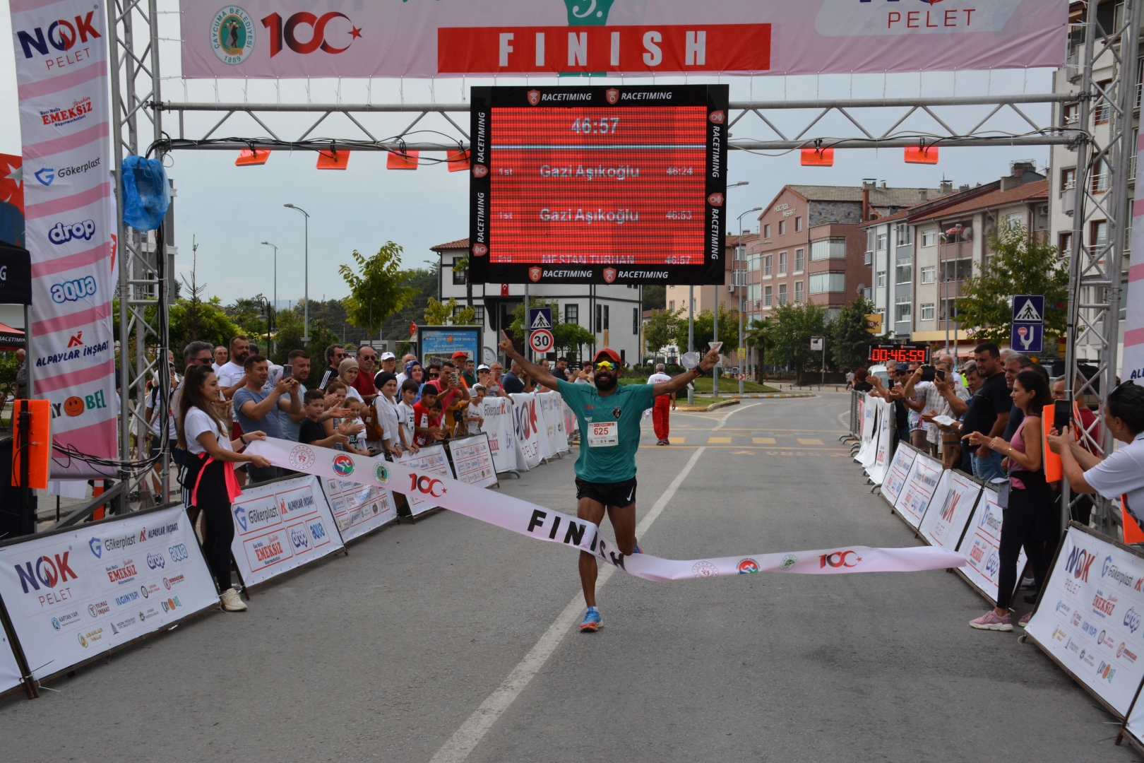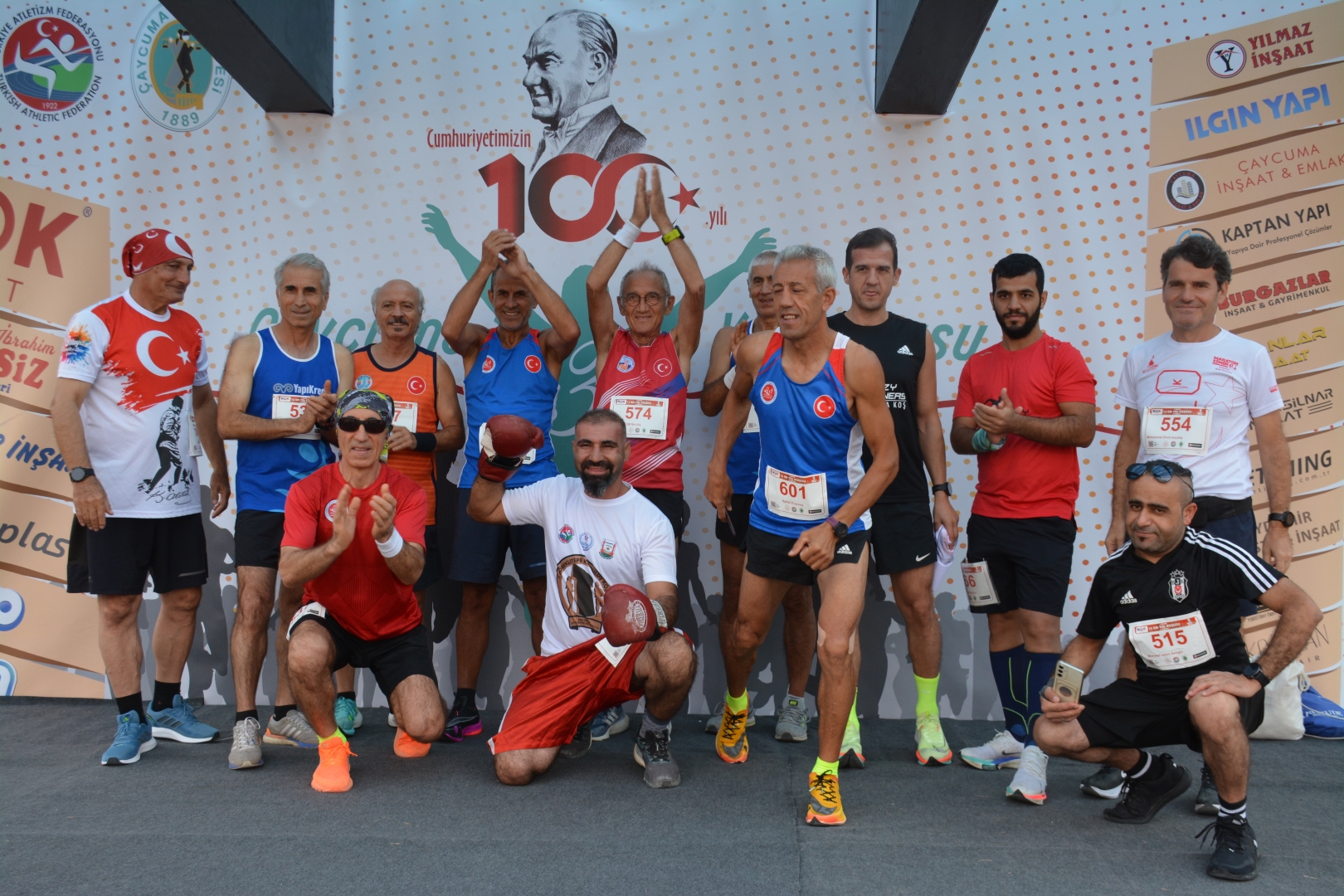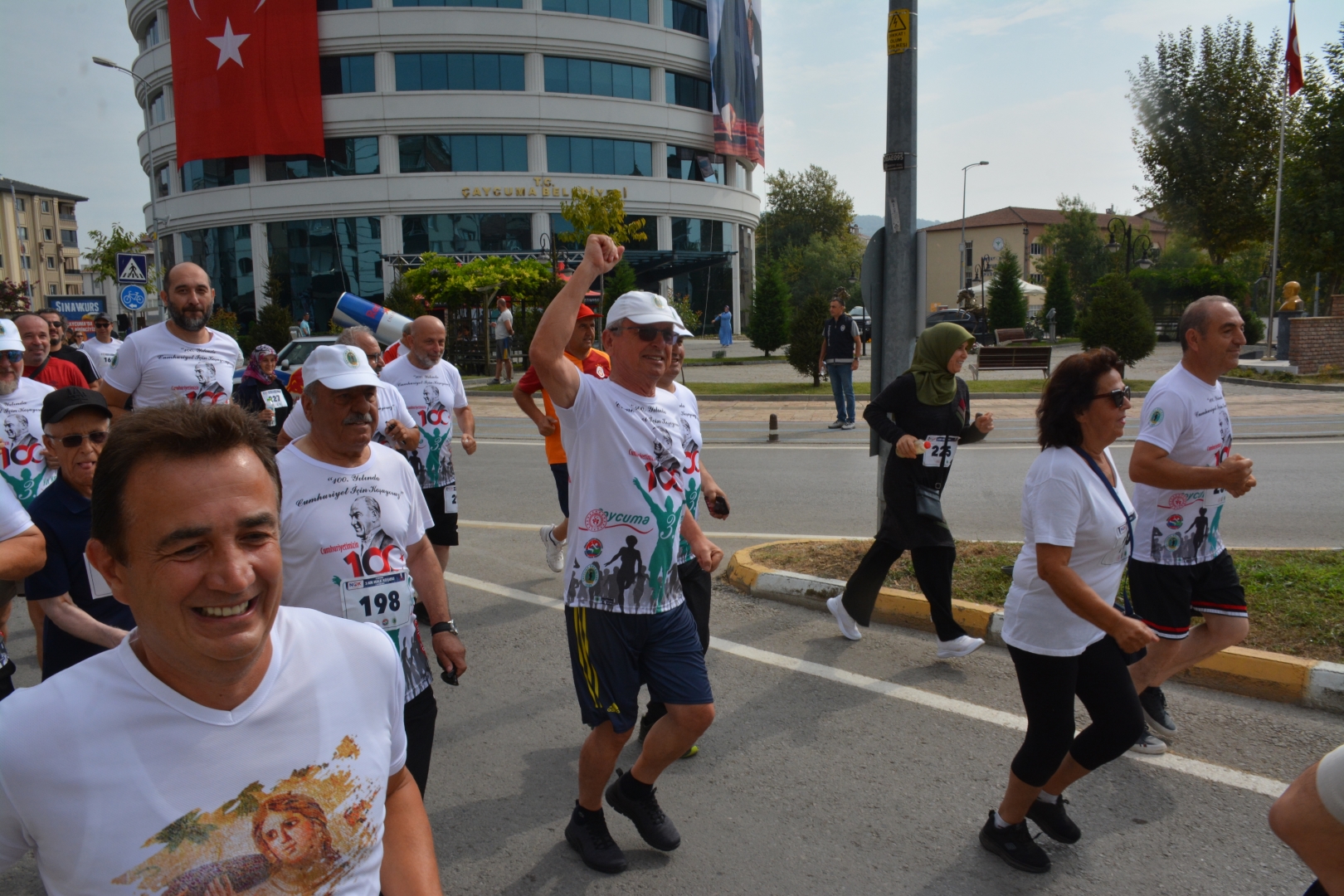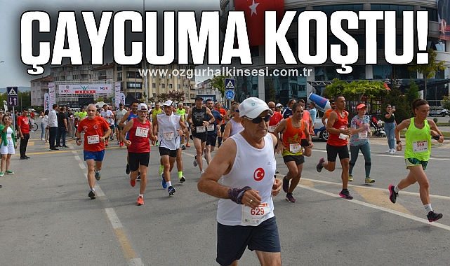 Çaycuma 3. Yol Koşusu “100. yılında Cumhuriyetimiz için koşuyoruz” temasıyla yapıldı. Kayıtlı 179 sporcunun katıldığı yarışı kadınlarda Ümmü Kiraz 52.40 ile yarışma rekorunu da kırarak kazanırken, erkeklerde Mestan Turhan 46.57 ile birinci geldi. Turhan’ın derecesi de yapılan üç yarışmanın en iyi zamanı oldu. 3 Kilometrelik Halk koşusunda kadınlarda Kinem Adak, erkeklerde ise Alpaslan Esen birinci olurken çocuklar kategorisinde derecelendirme yapılmadı. “Herkes şampiyon” denilen yarışta tüm çocuklar birinci sayılarak ödüllendirildi.KOŞUYA ATLETİZM DÜNYASININ SAYGIN İSİMLERİ DE KATILDI15 kilometre yol koşusuna, ünlü Sanatçı Salim Dündar, Maratonun unutulmaz ismi Veli Ballı’nın yanı sıra atletizm dünyasının saygın isimleri Mithat Şahin, Rıza Erdal, Gazi Aşıkoğlu, Asım Çetin, Bahar Doğan, Ali Özer, Bekirhan Karadayı da katıldı. 15 kilometre yol koşucuları arasında Devrek Kaymakamı Ümit Altay da yer aldı.SALİM DÜNDAR KENDİ YAŞ GRUBUNDA BİRİNCİ OLDUAtletim dünyasının Zonguldaklı “Koşan Adamı” Kemal Özdemir’in de katılıp ampute dalında birinci olduğu yarışmanın sunumlarını TRT’nin ünlü spikeri Güven Göktaş yaptı. Sanatçı Salim Dündar da kendi yaş kategorisinde birinci gelen isimler arasında yer aldı.HALK KOŞUSUNA YOĞUN KATILIM OLDUHalk Koşusuna Çaycuma Kaymakamı Mehmet Göze, Belediye Başkanı Bülent Kantarcı, Perşembe Belediye Başkanı İsmail İnam, Saltukova Belediye Başkanı Alim Genç, Bakacakkadı Belediye Başkanı Oktay Albuz, Önceki Dönem Zonguldak Milletvekillerinden Ali İhsan Köktürk, İlçe Milli Eğitim Müdürü İsmail Baş, Cumhuriyet Halk Partisi Çaycuma İlçe Başkanı Fahri Diler, Çaycuma Esnaf Sanatkarlar Odası Başkanı Hayri Kandemir, Çaycuma Kent Konseyi Başkanı Tuğrul Dereli, Çaycumaspor Başkanı Şenan Kerçin, Çaycuma ve Çevre Köylerini Kalkındırma ve Güzelleştirme Derneği Başkanı Savaş Çiloğlu, Türkiye Emekliler Derneği Çaycuma Şube Başkanı Nizamettin Eyidoğan, önceki dönem Karapınar Belediye Başkanı Ahmet Aydın, bazı belediye meclis üyeleri ve belediye daire amirlerinin yanı sıra kalabalık bir vatandaş topluluğu katıldı.KOŞUDA YAŞ GRUPLARINA GÖRE SIRALAMA ŞÖYLE OLUŞTU:Elit Sporcular (Kadın): Birinci: Ümmü Kiraz, İkinci: Remziye Erman, Üçüncü: Sena DoğanElit Sporcular (Erkek): Birinci: Mestan Turhan, İkinci: Yunus Emre Akkuş, Üçüncü: Bahattin Üney35-39 Yaş Gurubu (Kadın): Birinci: Semra Bulut İkinci: Melike Sigeze Üçüncü: Ayça Çelik bilek35-39 Yaş Gurubu (Erkek): Birinci: Orhan Başıbüyük, İkinci: Erhan Karaman Üçüncü: Necati Aktaş40-44 Yaş Gurubu (Kadın): Birinci: Nurhan Cengiz, İkinci: Sibel Yazıcı, Üçüncü: Berrak Irmak40-44 Yaş Gurubu (Erkek): Birinci: Sinan Koşay İkinci: Yücel Aydın Üçüncü: Rıdvan Alper Afacan45-49 Yaş Gurubu (Kadın): Birinci: Yasemin Karasu Dönmez, İkinci: Neslihan Zengin, Üçüncü: Nazmiye Uzunmehmet45-49 Yaş Gurubu (Erkek): Birinci: Aytekin Karataş, İkinci: Yaşar Yerlikaya, Üçüncü: Oğuz Civ50-54 Yaş Gurubu (Kadın): Birinci: Hatice Yorgancı Bedikoğlu, İkinci: Müberra Aslan50-54 Yaş Gurubu (Erkek): Birinci: Ali Özer İkinci: Ayhan Duymuş, Üçüncü: Hakan Öna55-59 Yaş Gurubu (Erkek): Birinci: Memet Mustafa Buldum ikinci: Seyfi Karakaş Üçüncü: Ömer Şahin60-64 Yaş Gurubu (Kadın): Birinci: Asiye Veral, İkinci: Meryem Uçar, Üçüncü: Sevil Özalp60-64 Yaş Gurubu (Erkek): Birinci: Ali Turan, İkinci: Metin Akbaş, Üçüncü: İlhan Büyükkurt65-69 Yaş Gurubu (Erkek): Birinci: Necdet Kökçü, İkinci: Necat Hümmet, Üçüncü: Turgay Oğuz70+ Yaş Grubu Kadınlar Birinci: Emine Semra Hergülman, İkinci: Döndü Uzaldı70-74 Yaş Grubu (Erkek): Birinci: Hasan Uludağ, İkinci: Recep Çerçioğlu Üçüncü: Mengüç Gözüyaşaran75-79 Yaş Grubu (Erkek): Birinci: Musa Çınar, İkinci: Köksal Kayaoğ80+ Yaş Grubu (Erkek): Birinci: Salim Dündar, İkinci: Muharrem AkkayAmpute Kategorisi (Erkek) Birinci: Kemal Özdemir