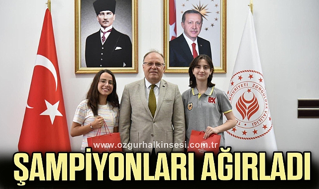 Zonguldak Valisi Mustafa Tutulmaz, 2023 LGS sınavında 500 tam puan alarak Türkiye 1’incisi olan Alaplı Bahçeşehir Koleji öğrencisi Elif Ecrin Çakmak ile Kozlu Ortaokulu öğrencisi Yağmur Er ve aileleri ile öğretmenlerini makamında kabul etti.Şampiyon öğrencilere hediyelerini veren Vali Mustafa Tutulmaz, tebrik ederek bundan sonraki öğrenim hayatlarında başarılar diledi.