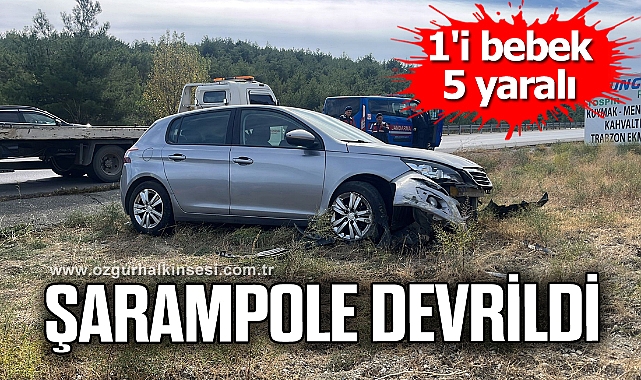 Kastamonu'nun Tosya ilçesinde kontrolden çıkan otomobilin şarampole devrildiği kazada 1'i bebek, 5 kişi yaralandı.