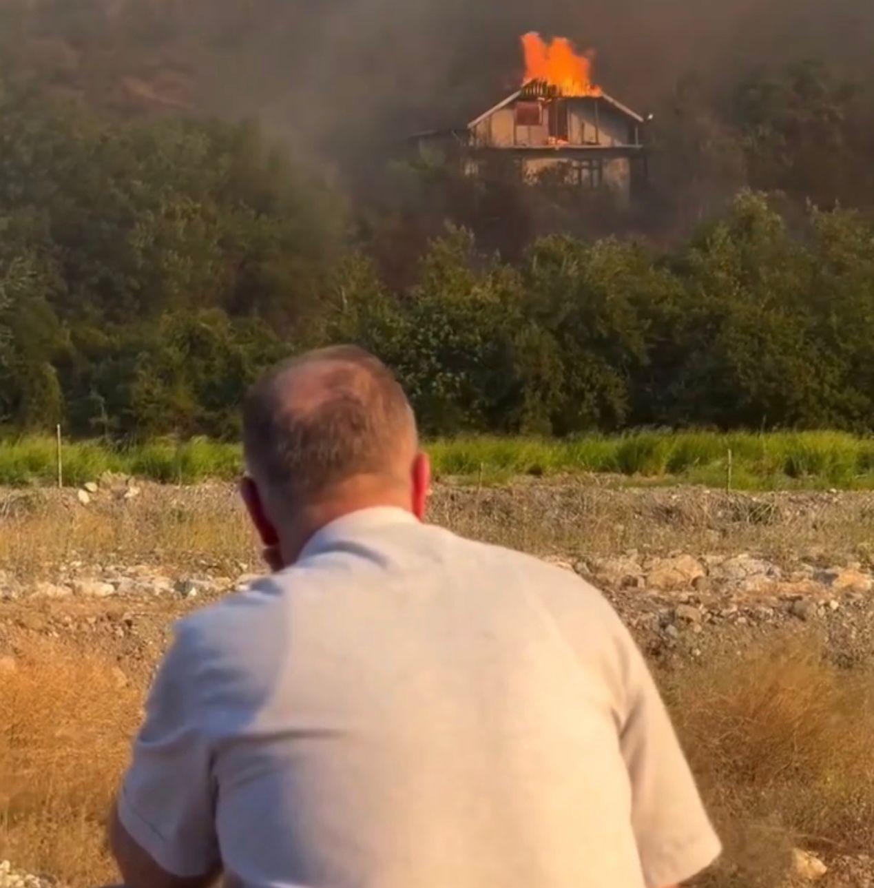 Dört gün önce Karabük'ün Safranbolu ve Ovacık ilçelerinde çıkan orman yangınıyla mücadele aralıksız bir şekilde devam ederken bir şehit babasının yanan evini çaresizce izlediği anlar yürekleri dağladı. O anlar sosyal medyada birçok kişi tarafından paylaşıldı.