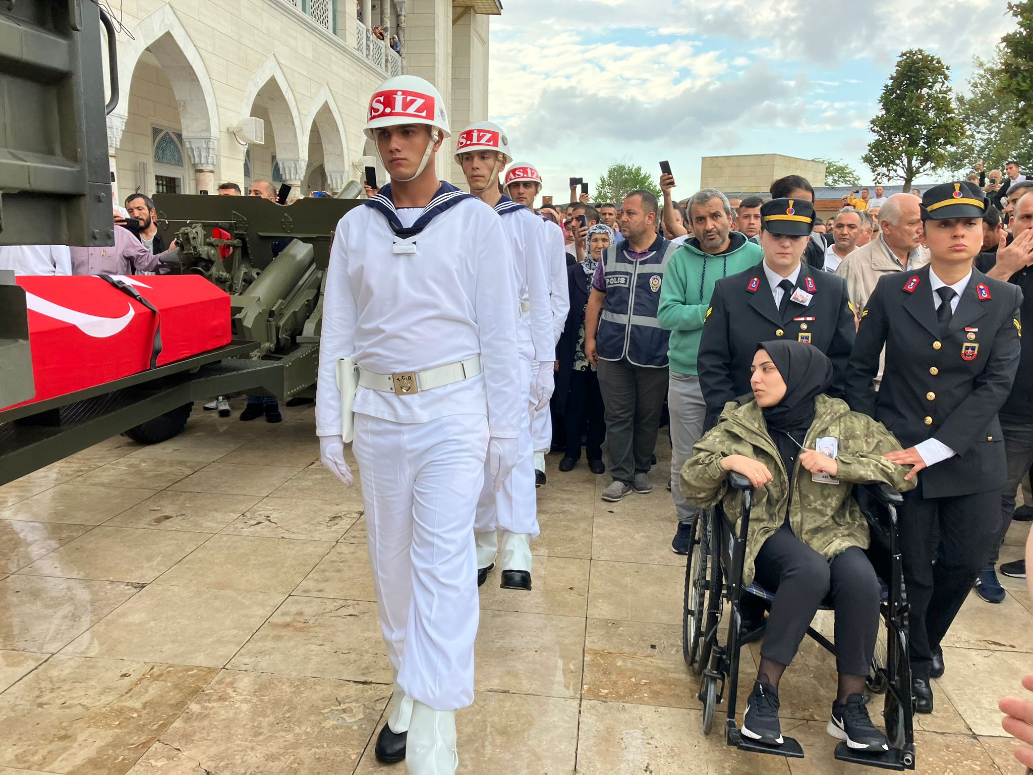 Şehit Uzman Çavuş Sezer’in naaşı, binlerce kişinin gözyaşları arasında top arabası üzerinde son yolculuğuna uğurlandı.