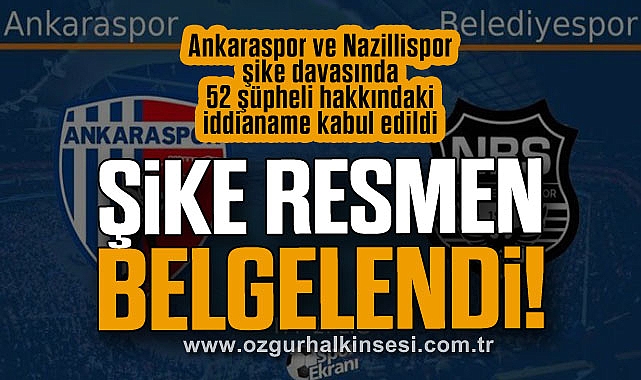 Ankaraspor ve Nazillispor şike davasında 52 şüpheli hakkındaki iddianame kabul edildi.