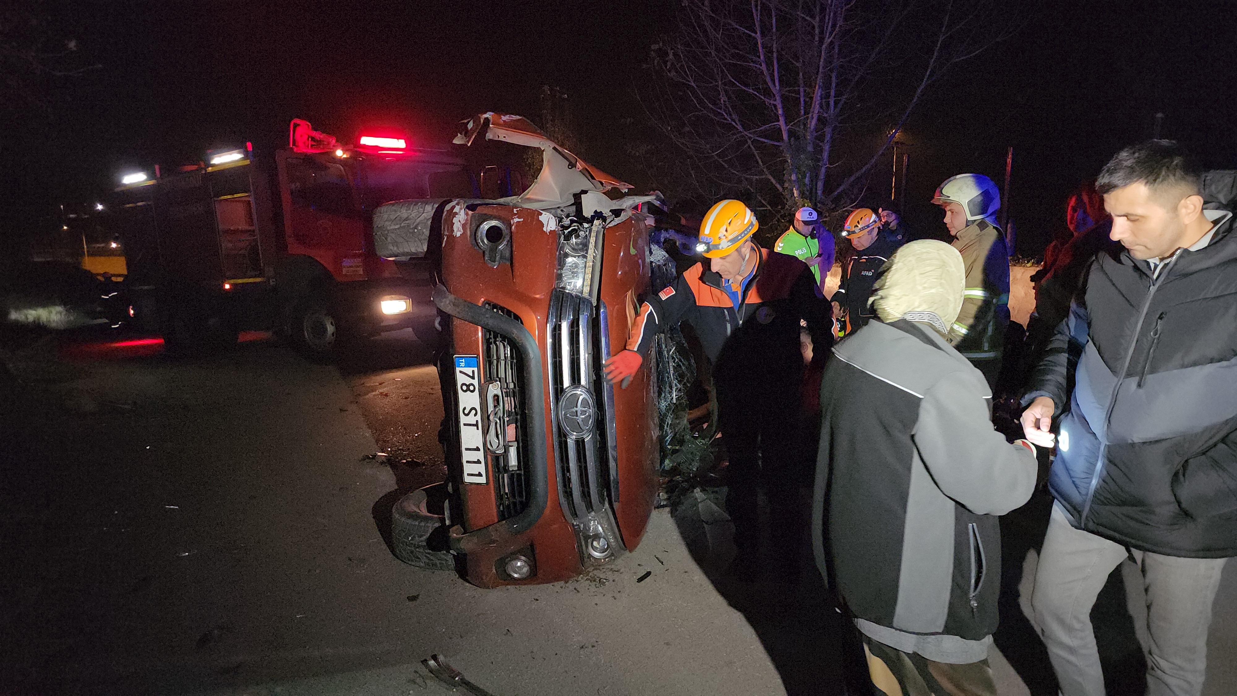 Karabük'ün Safranbolu kontrolden çıkan kamyonet, elektrik direğine çarparak yan yattı. Araçta sıkışan sürücü, itfaiye ve AFAD ekiplerinin yoğun uğraşları sonucu kurtarılarak hastaneye kaldırıldı.