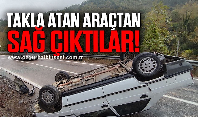 Edinilen bilgiye göre, Bartın'ın Ulus ilçesinden Ulukaya köyü istikametine seyir eden Sadık Ş. idaresindeki 74 BV 476 plakalı otomobil Hocaköyü mevkisinde virajı alamadı. Yağmur nedeniyle kontrolden çıkan otomobil, takla atarak durabildi. Kazada sürücü ve eşi Kezban Ş. hafif şekilde yaralandı. Sürücü ve eşini araçtan köylüler çıkardı. Hafif yaralı çift, olay yerine gelen ambulansla hastaneye kaldırıldı. Otomobilin çekici yardımıyla yoldan kaldırılmasının ardından ulaşım normale döndü.