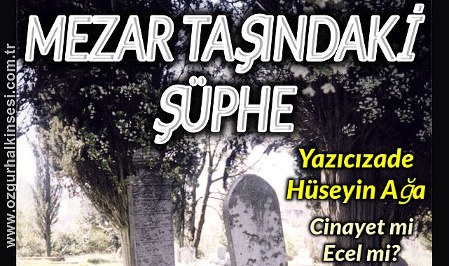 “ Hayfa gerdeğe girdiği gece fetheyledi kabrinbeka. Acep dostlar ne hikmetidir bu hikmet. Gelenler göç edip gitmekte hasret. Ben dedim ol hükm-ü İlaha razıyım her emrine. Gün ezelden böyle takdir eylemiştir Zülcehal. Merhumun Ruhuna Fatiha.”Günümüz Türkçesine göre anlamı şu ; Gerdeğe girdiği gece ölü bulundu. Bu nasıl olabilir ? (Şüpheli) Allahın hükmüne karşı gelemem .Böyle taktir etmiş. Ruhuna FatihaBu mezar 17 Nisan 1899 yılında vefat eden Yazıcızade Hüseyin Bey'e ait.Alaplı,Teşkil-i Vilâyet Nizamnamesine göre Kastamonu Vilayeti, o yıllarda Bolu Sancağı Kazası durumundadır.1851 Takvim-i Vekayi (Osmanlı Resmi Gazetesi) yayınına göre, Alaplı yöneticisi veya tam adı ile Osmanlı zamanında Kaza olan yerlerde yönetici Azası (Belediye Başkanı gibi) Yazıcızade Hüseyin Bey'dir . Namından da anlaşıldığı üzere Alaplı'nın köklü ve tanınmış ailelerindendir. O yıllarda Alaplı'da tek konağın sahibidir.Yazıcızade Hüseyin Bey’in Osmanlı Sarayı ile iyi ilişkileri olduğu bilinse de , o dönemim vergi sistemine göre ‘Aşar vergisi’ ödemelerinde usulsüzlük yaptığı gerekçesi ile Meclis-i Vala-yı Ahkam-ı Adliye tarafından mahkum edilir ve Abdülmecid tarafından başka bir yere sürülür. Yugoslavya'nın Priştine şehrine sürülen Yazıcızade Hüseyin Bey bir süre Gelibolu’da kaldıktan sonra Alaplı’ya geri döner. Yazıcızade artık yaşlanmıştır. İlginç bir şekilde Osmanlı Sarayı tarafından kendisine evlenmesi için bir cariye gönderilir. Alaplı’da düğün dernek kurulur. Fakat gerdek gecesi sabahında evinde ölü bulunur. O günkü şartlarda otopsi bu kadar gelişmediği için için ölüm nedenine bir anlam verilememiş ve mezar taşına bu cümleler yazılmıştır. Bu yazı aslında şüpheli ölüm kinayesi taşımaktadır. Kim bilir belki ileride araştırılması için bir not niteliği taşımaktadır.Osmanlıda cariyeler genelde yabancı uyruklu kadınlardan oluşurdu. İnsan kaçakçıları tarafından kaçırılan çocuklar burada padişahın hareminde büyütülür ve aralarından gözde cariyeler yükselmeye başlardı.Genelde Osmanlı sarayına alınan cariyeler, Anadolu’daki aza sıfatındaki kişilere eş olarak yollanmazdı. Fakat aynı zamanda cariyeler para karşılığı satılan kölelerdi. Yazıcızade Hüseyin’e yollanması ve akabinde ölmesi, halk tarafından şüphe uyandırmıştır. Belki kadın kendisi: Osmanlı sarayında gözde cariye olamayıp, Alaplı’da yaşlı bir adama yollanmasını hazmedemedi.Alaplı’nın en ünlü ailesi eşrafından olan Yazıcızade Hüseyin gerdek gecesinde kalp krizi mi geçirdi yoksa Saray’dan gönderilen kadının suikastına mı kurban gitti ? Hiçbir zaman anlaşılamadı.(Alaplı’nın bilinen eski yöneticinin mezarı bakımsızlık içindedir)Hayati Yılmaz ileZonguldak Tarih