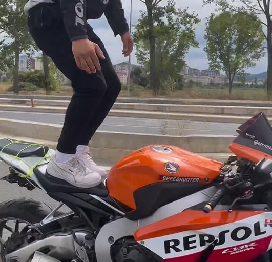 Kastamonu’da E.K. isimli motosiklet sürücüsü, plakasız motosikleti ile iki şeritli bir karayolunun sol şeridini kapatarak önce ellerini bıraktı. Daha sonra motosikletinin üzerine çıkıp ayaklarıyla dengede kalan motosiklet sürücüsü E.K., yaptığı tehlikeli hareketlerle hem kendisini hem de diğer sürücüleri tehlikeye düşürdü. Motosikletlinin trafikteki bu tehlikeli hareketleri diğer sürücüler tarafından cep telefonu kamerasıyla görüntülendi.