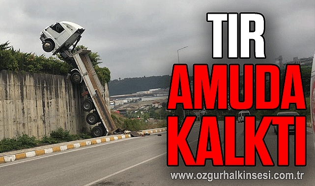 Araç sahibinin dikkatsizliği nedeniyle kayan TIR baş aşağı dikili kaldı.