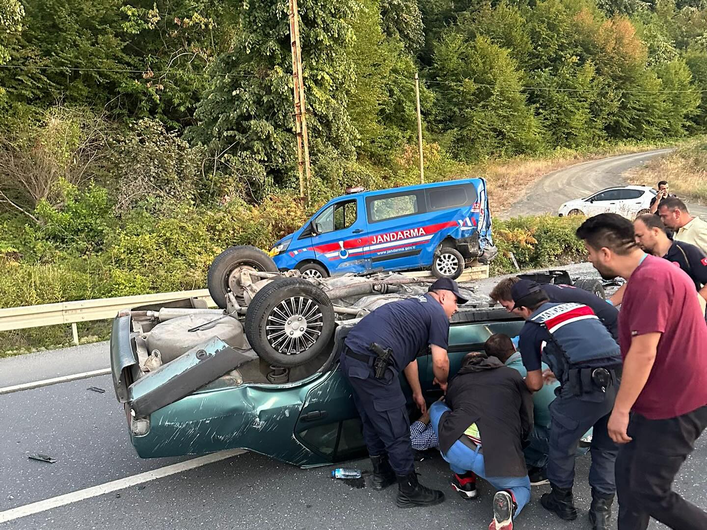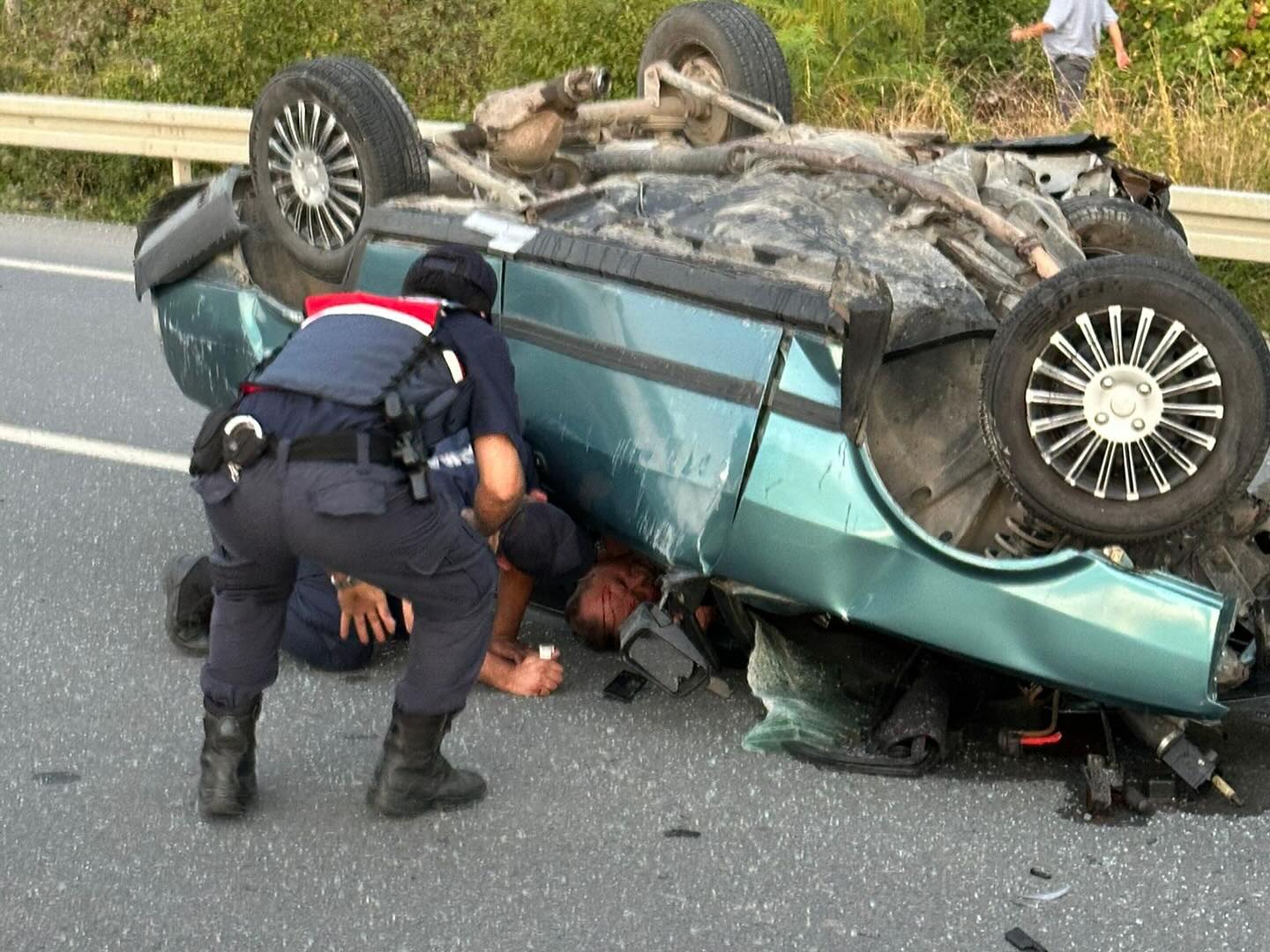 Kaza, akşam saatlerinde Akçakoca ile Alaplı arasındaki Ölüce mevkiinde yaşandı. Akçakoca’dan Alaplı yönüne giden 67 ZF 676 plakalı Tofaş marka otomobil, denetim için yol kenarında duran jandarma aracına arkadan çarptı. Çarpmanın etkisiyle otomobil sürüklenip takla attı.