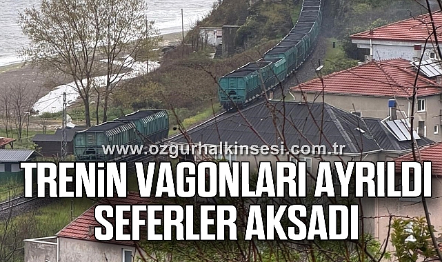 Zonguldak'ın Kilimli ilçesine bağlı Türkali Köyü'nde TCDD'ye ait yük treninin iki vagonu diğer vagonlardan ayrıldı. Olay nedeniyle tren seferlerinde aksama yaşanırken, bölgeye ekipler sevk edildi.