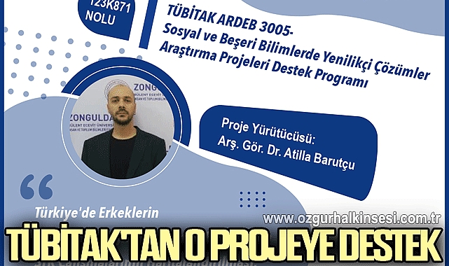 Zonguldak Bülent Ecevit Üniversitesi (ZBEÜ) İnsan ve Toplum Bilimleri Fakültesi Sosyoloji Bölümü öğretim elemanı Arş. Gör. Dr. Atilla Barutçu’nun yürütücüsü olduğu 123K871 No.lu “Türkiye'de Erkeklerin Cinsiyet Eşitliğine Katılımını Hedefleyen STK Çalışmalarının Haritalandırılması, Değerlendirilmesi ve Toplumsal Etkilerinin Güçlendirilmesi” başlıklı proje TÜBİTAK ARDEB 3005-Sosyal ve Beşeri Bilimlerde Yenilikçi Çözümler Araştırma Projeleri Destek Programı kapsamında desteklenmeye değer görüldü.
