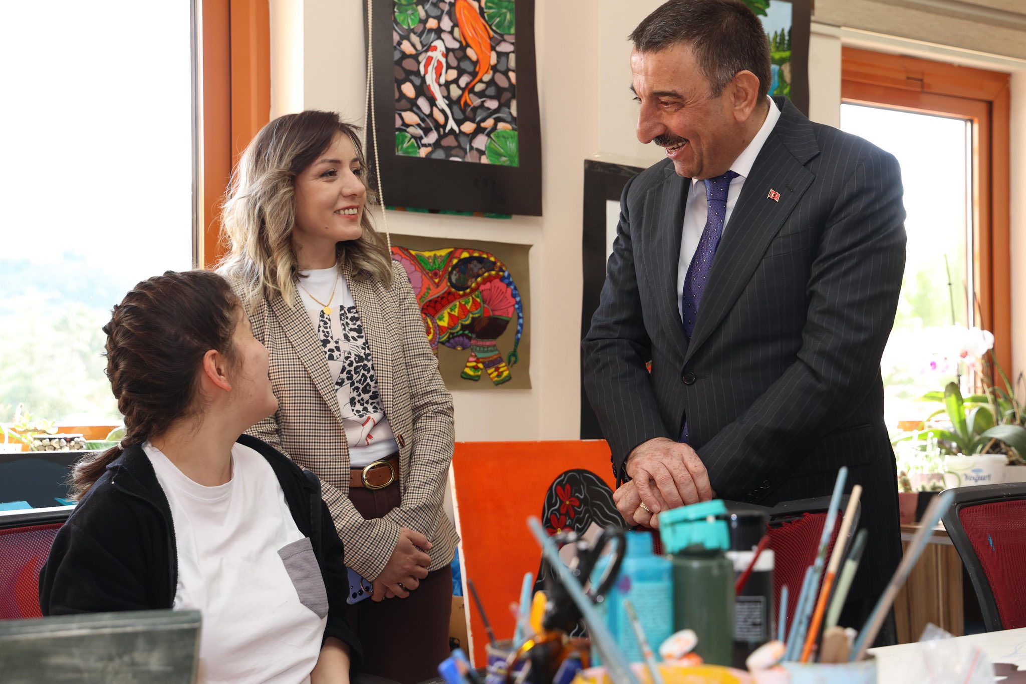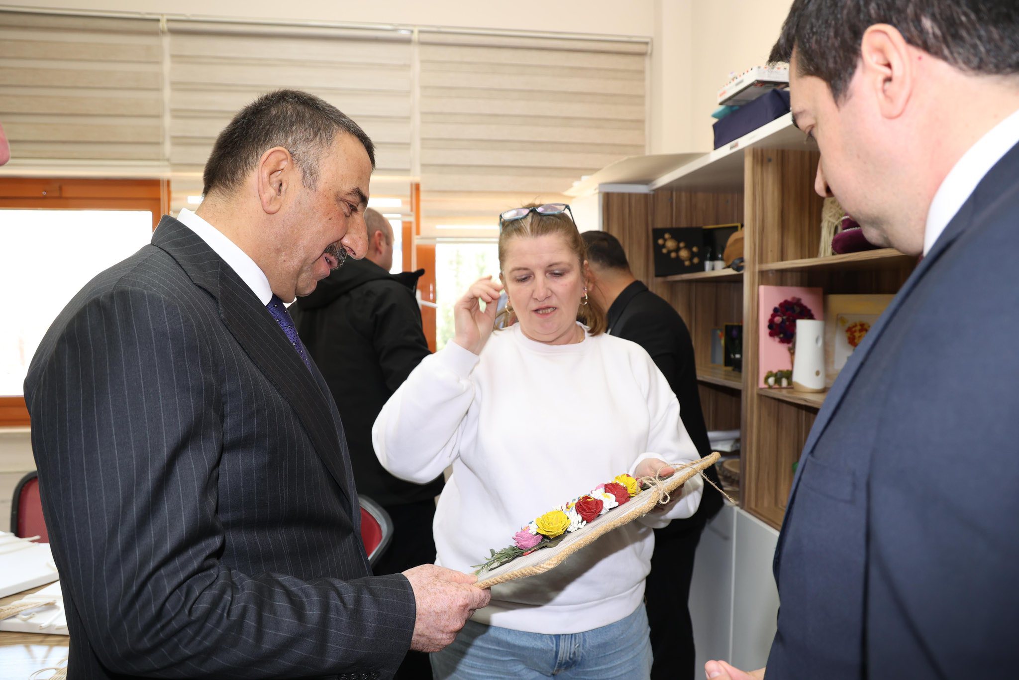 Atölye alanlarını gezen Vali Hacıbektaşoğlu, merkezden hizmet alan katılımcılarla sohbet ederek yapılan resimleri ve el emeği ürünleri inceledi, emeklerinden dolayı katılımcıları ve eğitmenleri tebrik etti.