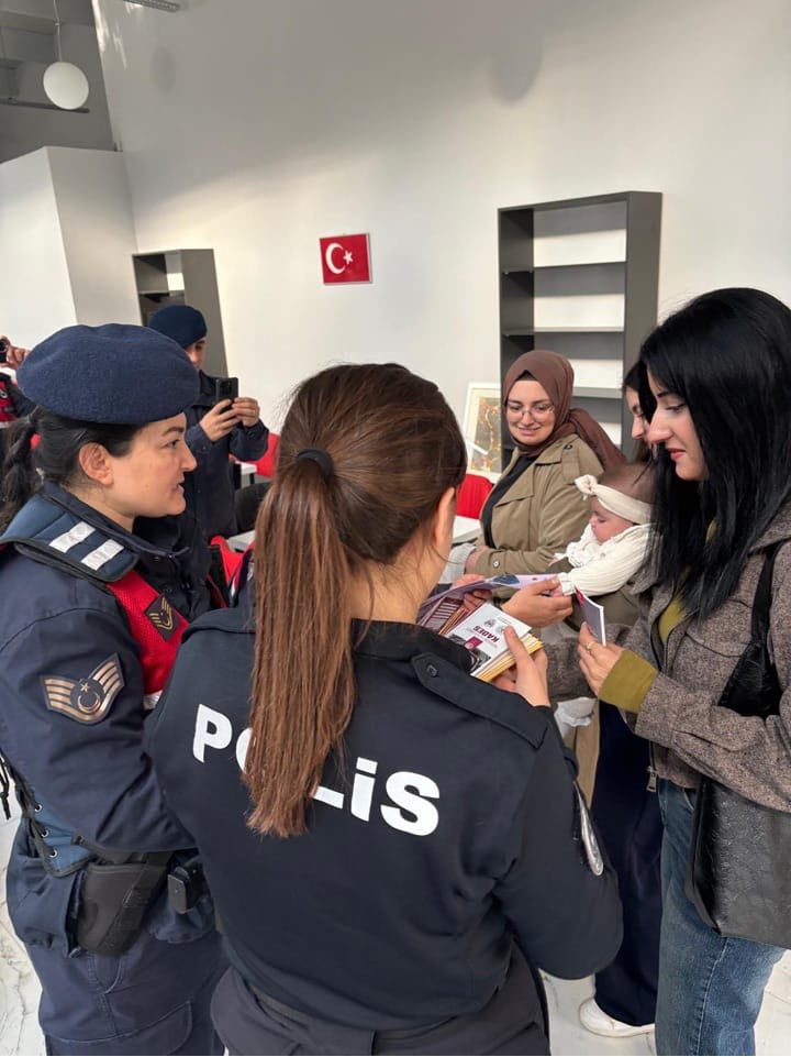 Kadına Yönelik Şiddete Karşı Uluslararası Mücadele Günü kapsamında; Çaycuma İlçe Emniyet Müdürlüğü, Çaycuma İlçe Jandarma Komutanlığı ve Çaycuma İlçe Sosyal Hizmetler Merkezi Müdürlüğü personelleri tarafından ilçe genelinde vatandaşlara KADES broşürü dağıtıldı.