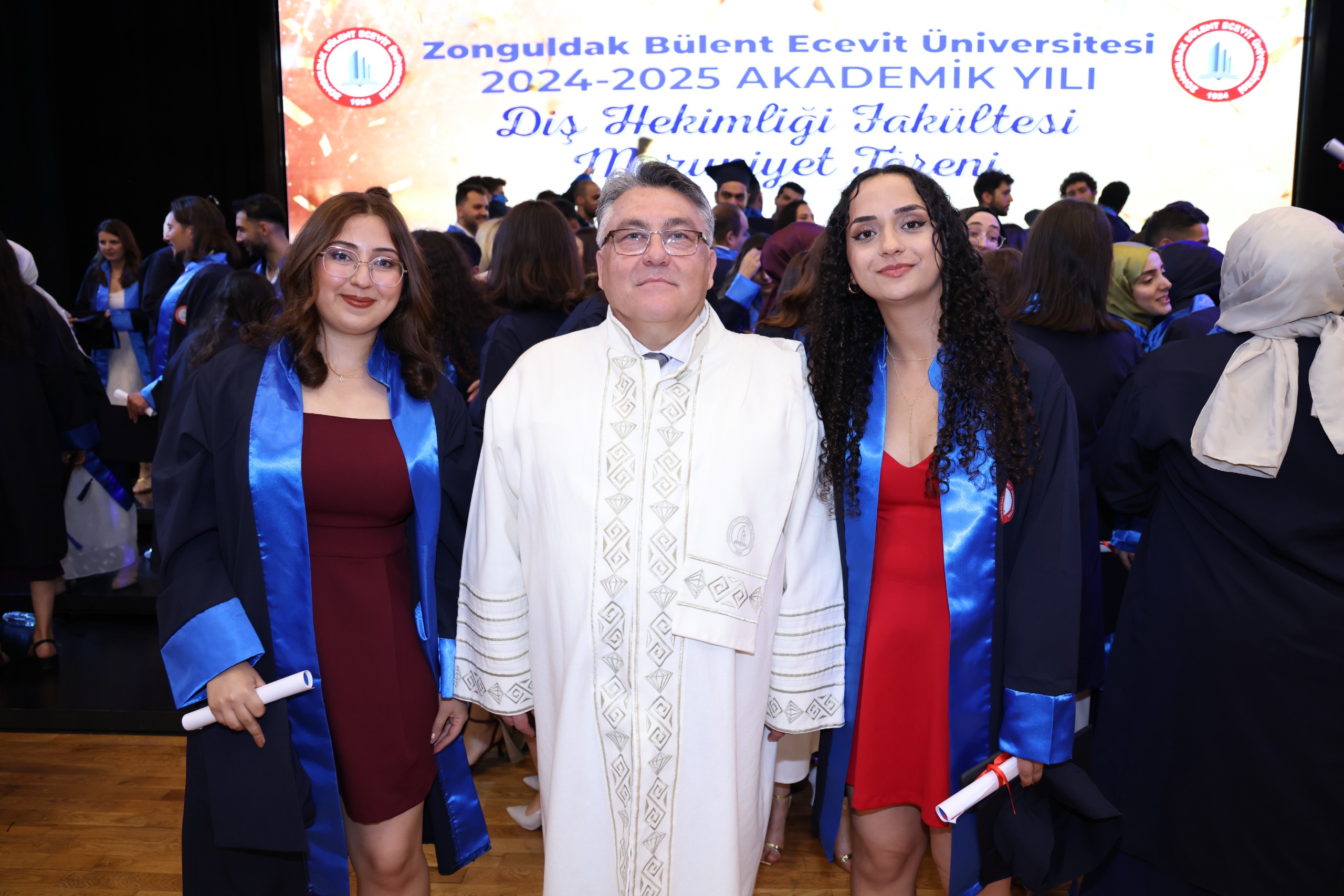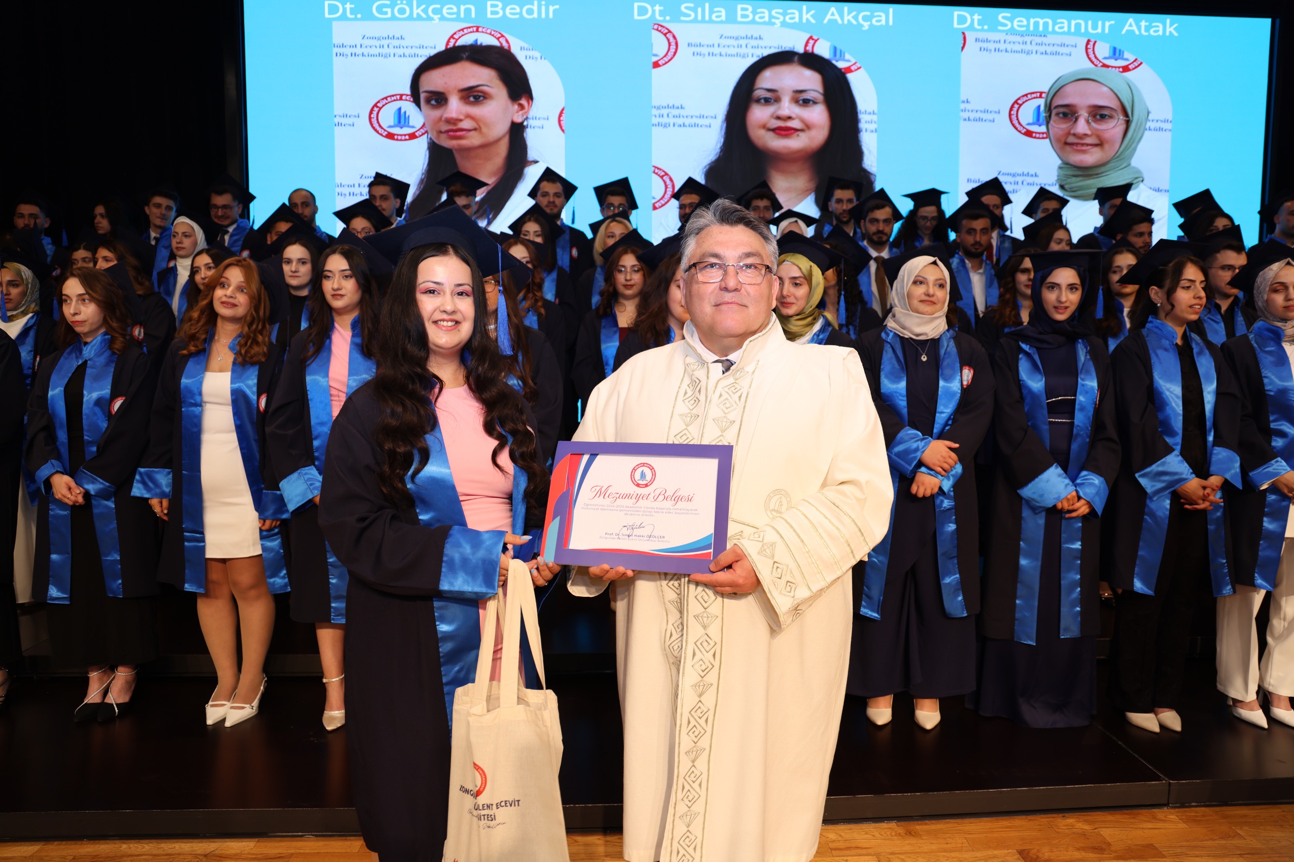 Tören BEUN Rektörü Prof. Dr. İsmail Hakkı Özölçer’in, fakülteyi dereceyle bitiren mezunlara başarı belgelerini takdim etmesiyle devam etti. Dereceye girenlere verilen ödül ve başarı belgesi takdiminin ardından fakülteden mezun olan tüm diş hekimlerine mezuniyet belgeleri takidm edildi. Belge takdiminin ardından ise Mezuniyet Yemin Töreni’ne geçildi. Prof. Dr. Ebru Hazal Bodrumlu eşliğinde tüm mezunlar yemin etti. Yemin töreninin devamında ise kep atma törenine geçildi. 2024-2025 Akademik Yılı Diş Hekimliği Fakültesi Mezuniyet Töreni, mezunların keplerini atması ve akabinde hatıra fotoğrafı çekilmesiyle sona erdi.