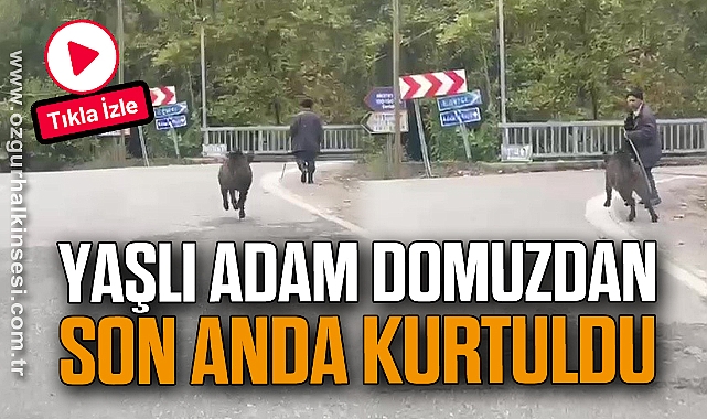 Zonguldak'ın Devrek ilçesinde kaydedilen görüntülerde yaşlı bir adamın üzerine koşan domuzdan son anda kurtuldu. Yolun ortasında koşturan domuz, amatör kamera görüntülerine yansıdı.