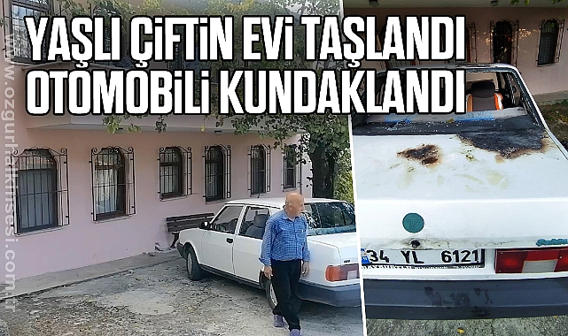 Yaşlı çiftin evi taşlandı, otomobili kundaklandı
