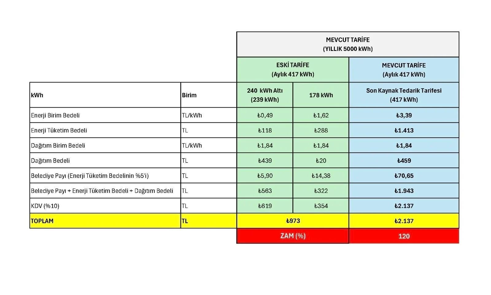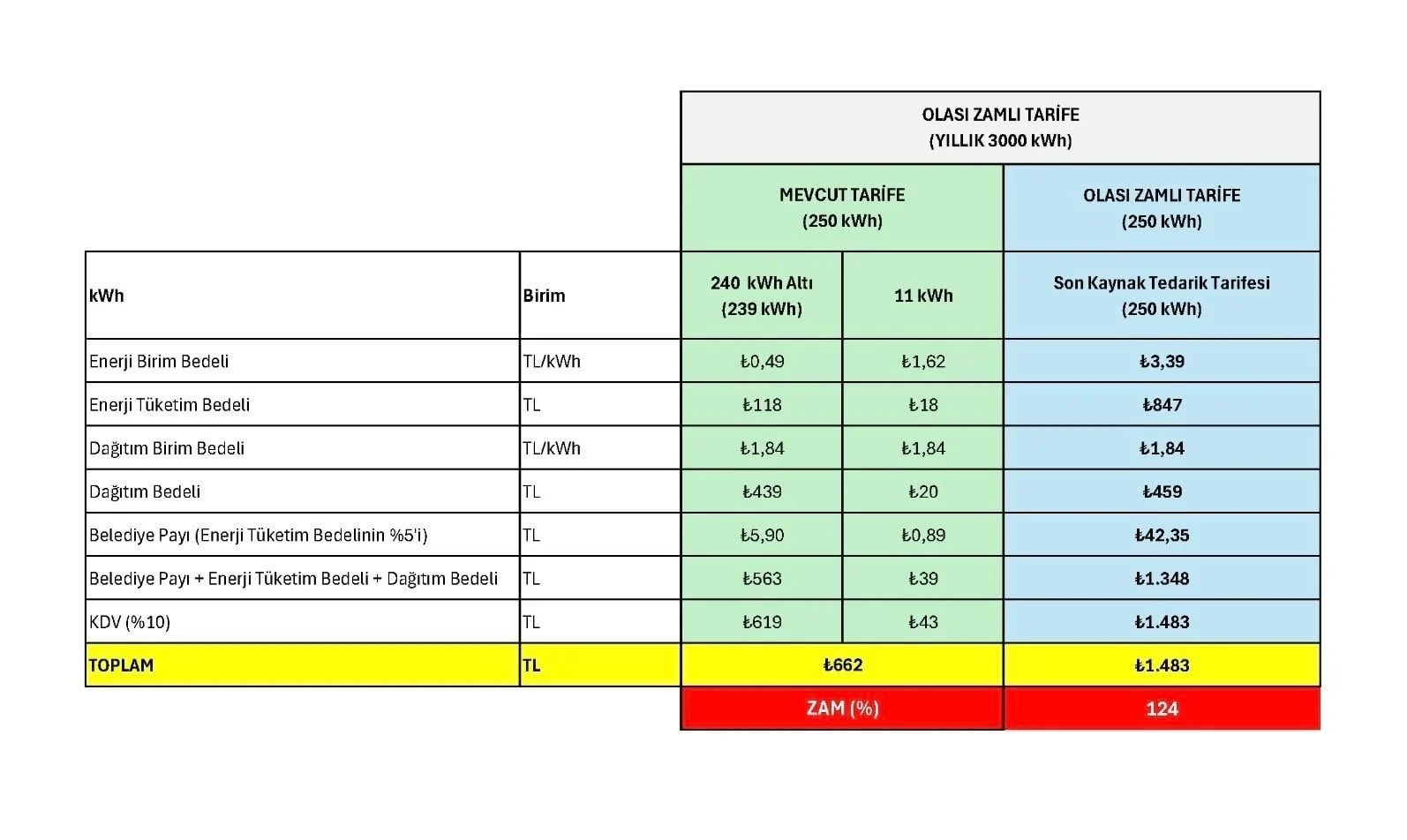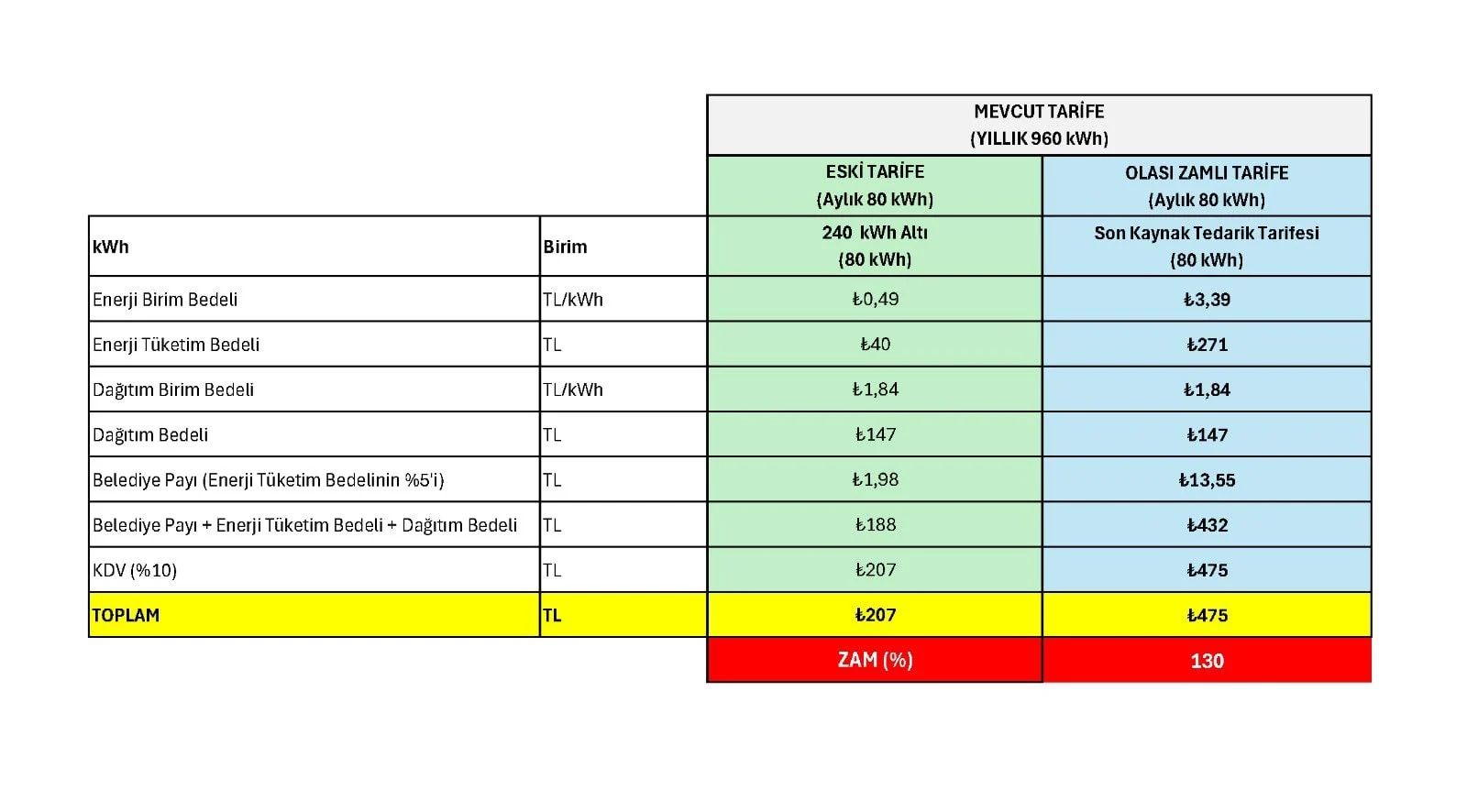 Yavuzyılmaz, ortak kullanım alanlarının elektrik faturalarında yüzde 130’a varan zam olabileceğini belirterek, “Bu düzenleme yürürlüğe girerse yaklaşık 45 milyon vatandaş olumsuz etkilenecek” dedi.Yeni düzenlemeye göre; asansör, hidrofor, otomat ve çevre aydınlatması gibi bina ortak kullanım alanlarında elektrik tüketimi 2025 yılı içinde 3.000 kWh’yi veya 8 bin TL’lik yıllık fatura tutarını aşarsa, bu sayaçlar 2026’dan itibaren daha yüksek tarifeden faturalandırılacak.Yavuzyılmaz, bu değişikliğin apartman ve site aidatlarına dolaylı yoldan dev zam anlamına geldiğini vurguladı:“Vatandaşın cebinden çıkacak para artacak ama bu artış faturada ‘zam’ olarak görünmeyecek. Ortak sayaçlara yapılan bu gizli zam, daire başına yüzde 10 ila 20 oranında ek maliyet getirecek.”Enerji zamlarının artık yalnızca bireysel değil, apartman ve site ortak alanlarını da hedef aldığını belirten Yavuzyılmaz, şu ifadeleri kullandı:“Bu yanlış planlamadan derhal vazgeçilmelidir. Elektrik tarifeleri üzerinden dolaylı yollarla yapılacak dev zam, vatandaşın yaşamını daha da zorlaştıracak.”Yavuzyılmaz, özellikle apartman, kooperatif ve sitelerin bu düzenlemeden ciddi şekilde etkileneceğini belirterek,“AKP’nin elektrik zammı; bebeği, genci, yaşlısı, hastası, asgari ücretlisi, emeklisi, hiç birine acımayarak 45 milyon vatandaşı daha çarpacak!” ifadelerini kullandı.