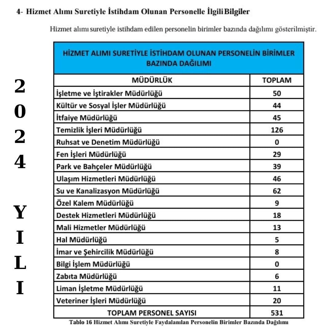 Bildiğiniz üzere seçim 2024 yılında yapıldı. O dönem çokça tartışılan personel sayısı 531 idi. Bu çalışanların bir kısmı seçim sonrasında işten çıkarıldı.