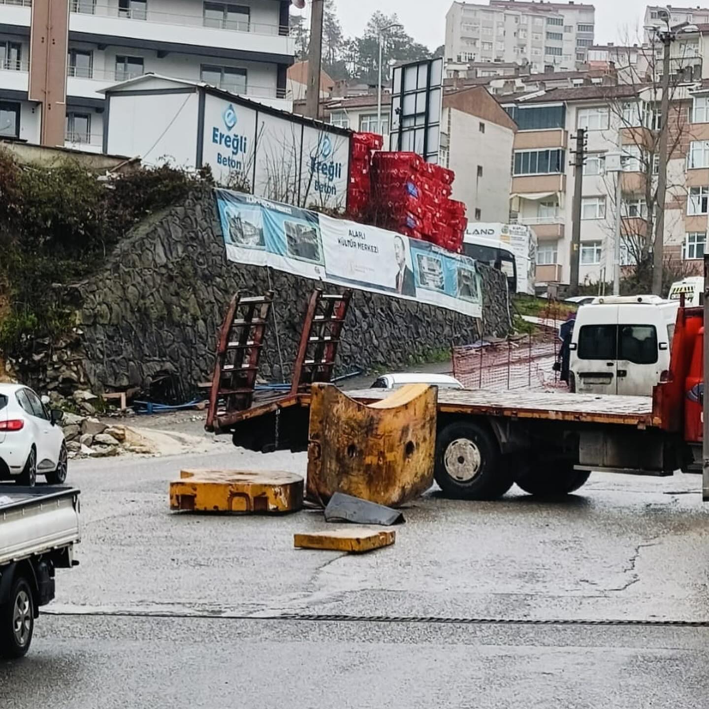 İhbar üzerine bölgeye ekipler sevk edildi. yola düşen ağır parçalar, güvenlik önlemleri alınarak vinç yardımıyla kaldırıldı. Çalışmalar sırasında trafik kontrollü şekilde sağlandı.