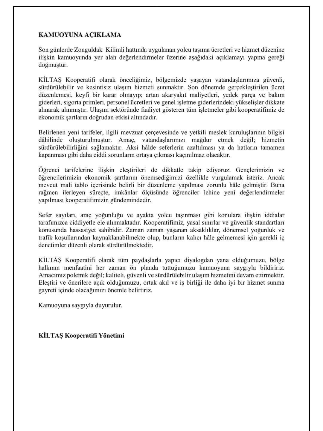 KİLTAŞ Kooperatif’inden yapılan açıklama şöyle;