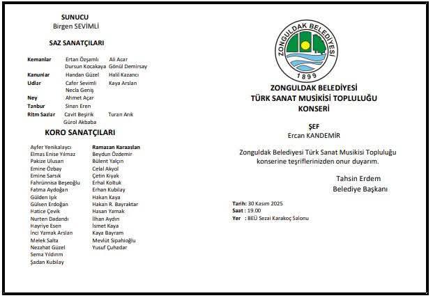 Konser, 30 Kasım 2025 tarihinde saat 19.00’da BEÜ Sezai Karakoç Salonunda gerçekleştirilecek.