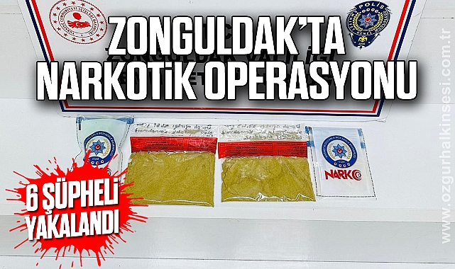 Gerçekleştirilen narkotik operasyonunda T.A, F.T, M.A, S.M, A.K. ve S.M. isimli (6) şüpheli yakalandı.