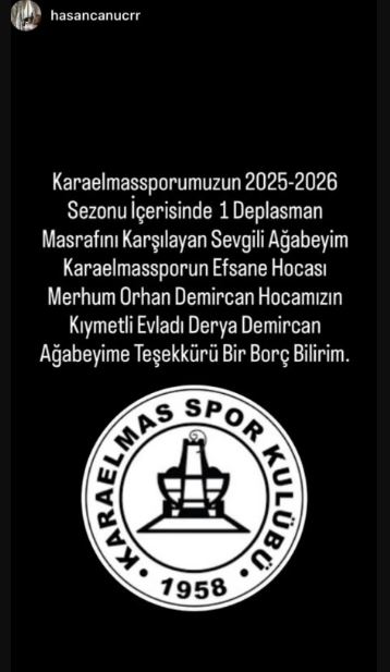 Karaelmasspor Kulübü Başkan Vekili Hasan Uçar, bir maçlık deplasman giderlerini karşılamasından ötürü iş insanı Derya Demircan için sosyal medya hesabından bir teşekkür mesajı yayımladı.Başkan Vekili Uçar, mesajında şu ifadelere yer verdi: