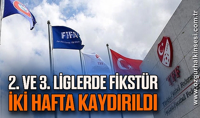 Türkiye Futbol Federasyonu, 2. Lig ve 3. Lig müsabaka fikstürlerinin 2 hafta kaydırılmasına karar verildiğini açıkladı.TFF'den yayınlanan metinde şu ifadeler kullanıldı:"TFF Yönetim Kurulu'nun TFF 2. Lig ve TFF 3. Lig'in iki hafta kaydırılması kararı doğrultusunda, ilk devrenin sonuna kadar oynanacak olan haftalar için belirlenen müsabaka takvimi değişti. Değişen tarihlere göre düzenlenmiş yeni müsabaka programları daha sonra ilan edilecektir."